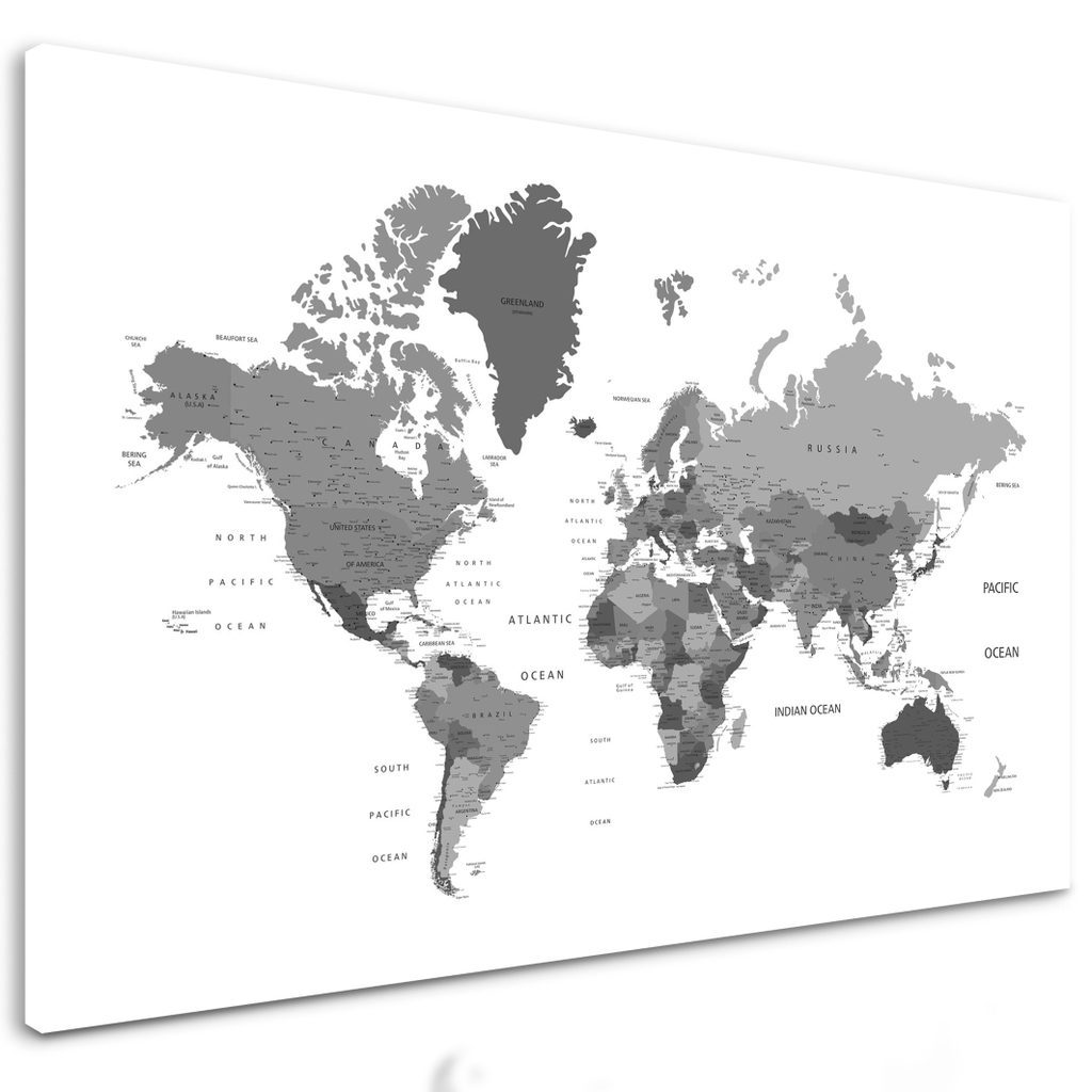 Obraz mapa světa v černobílém provedení