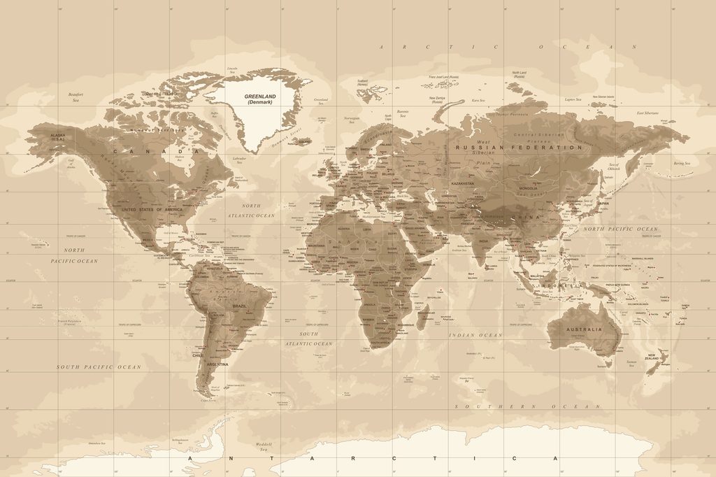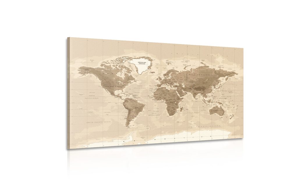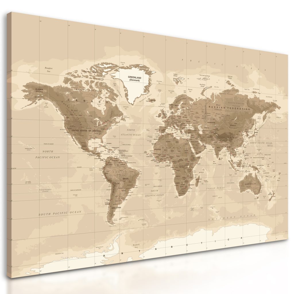 Obraz na korku mapa světa s historickým nádechem v černobílém provedení