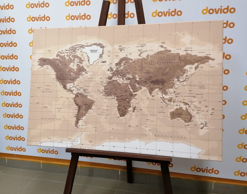 Obraz na korku podrobná mapa světa v černobílém provedení