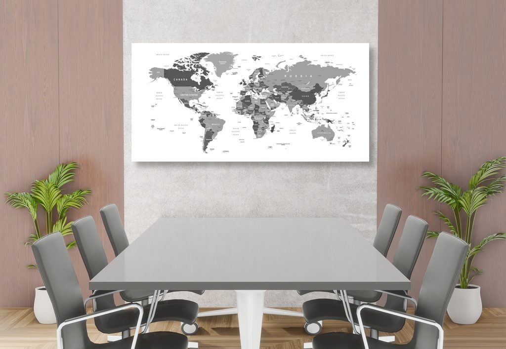 Obraz na korku jednoduchá mapa světa v šedém provedení