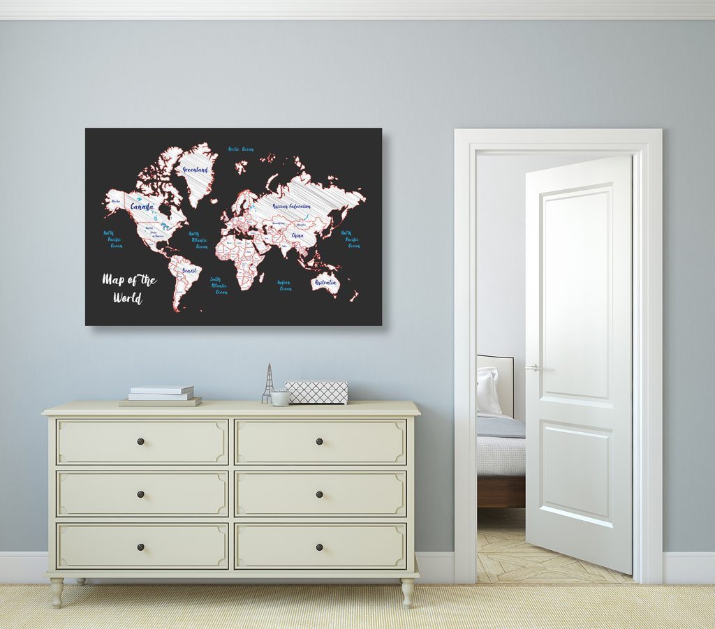 Obraz na korku mapa světa v uměleckém provedení