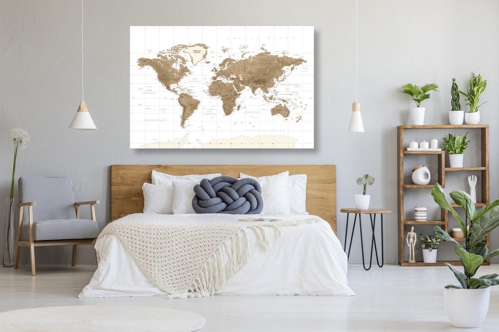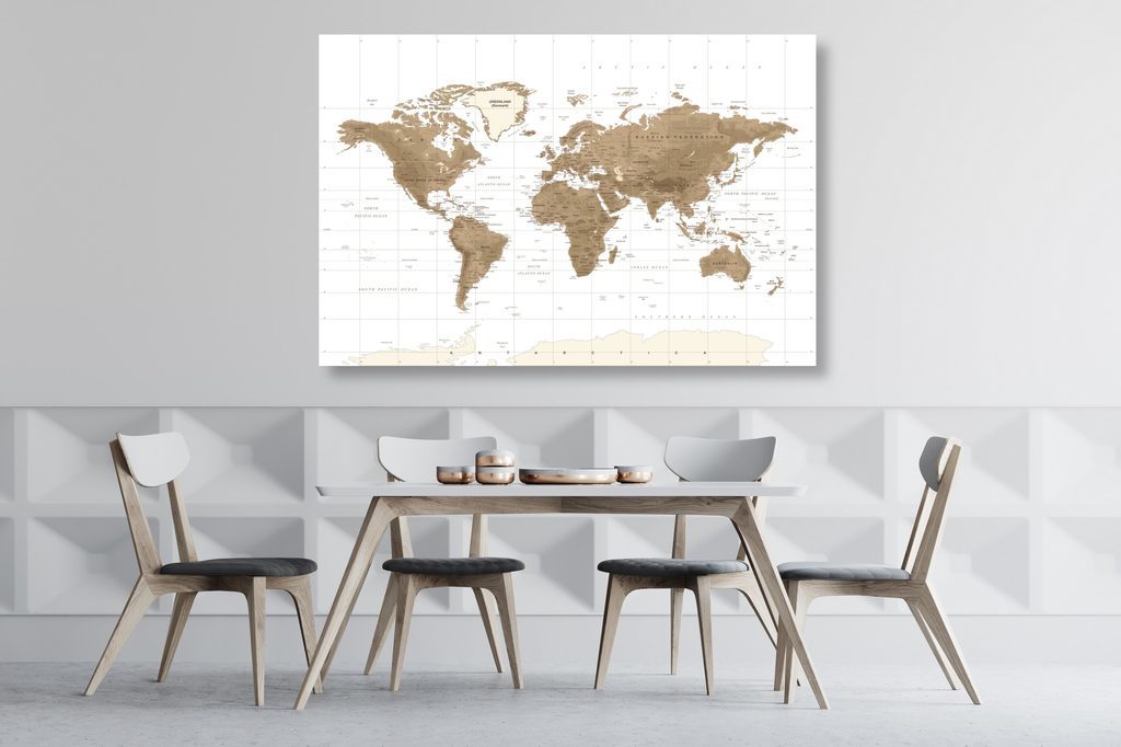 Obraz na korku moderní mapa světa v sépiovém provedení