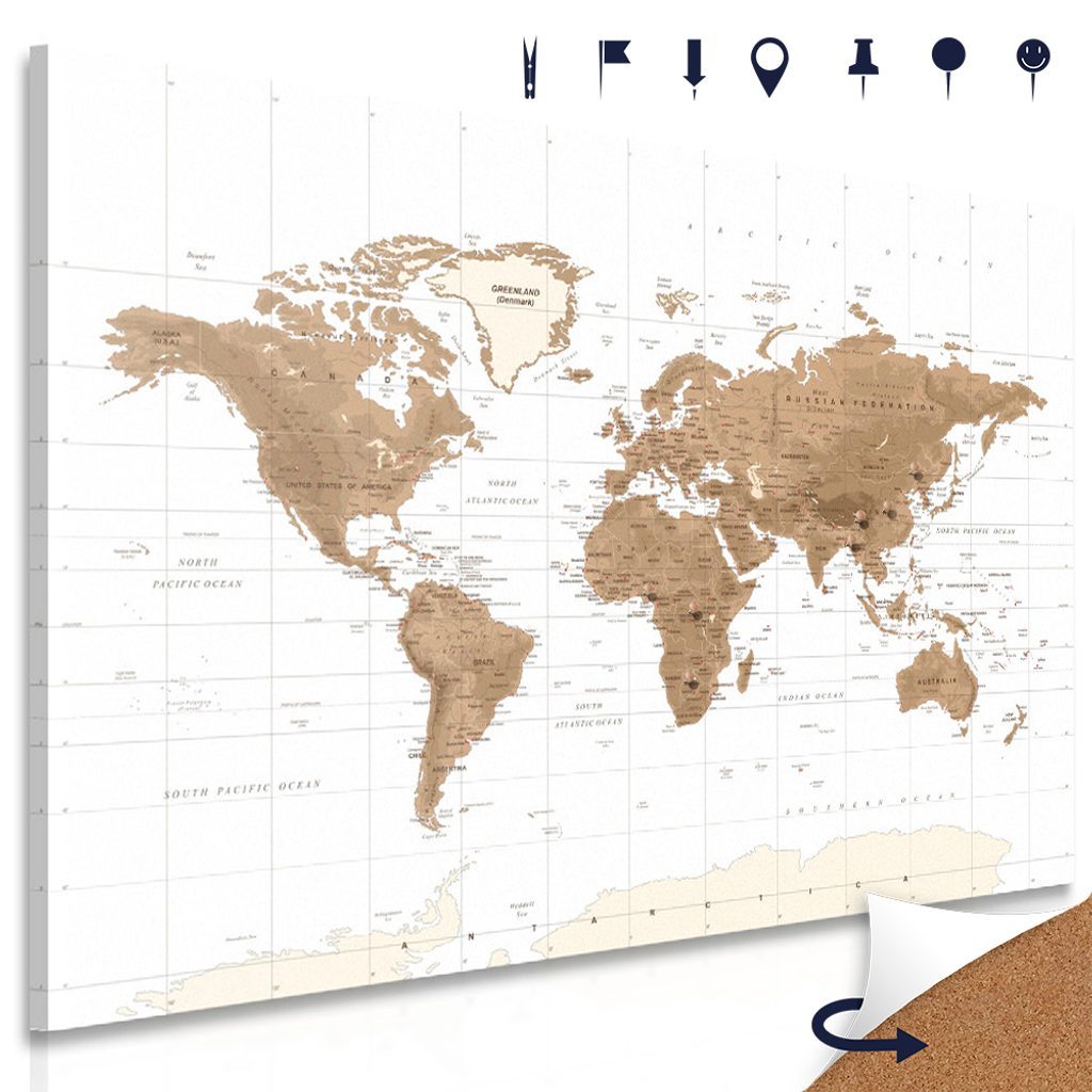 Obraz na korku béžová mapa světa pro dobrodruhy