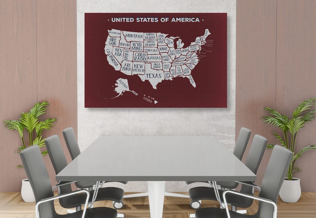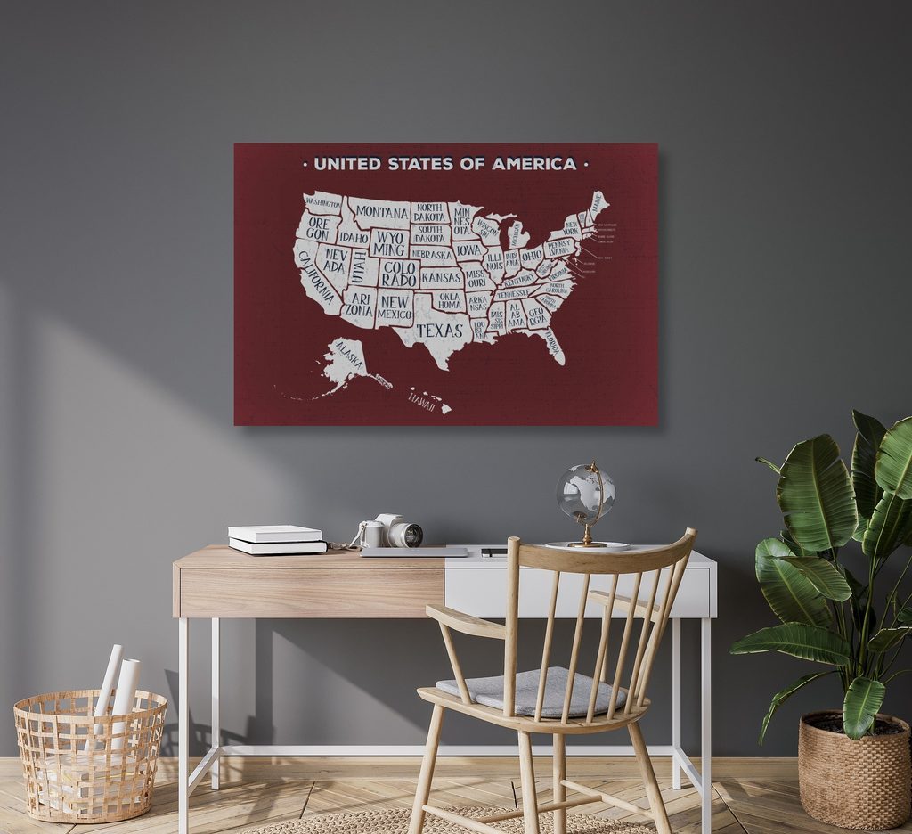 Výhody USP mapy na korku Snadná instalace, Korková deska tlustá až 3 mm, Rozmanité využití produktu - vhodné i jako dárek, Součástí obrazu je 10 ks připínáčků dle vlastního výběru