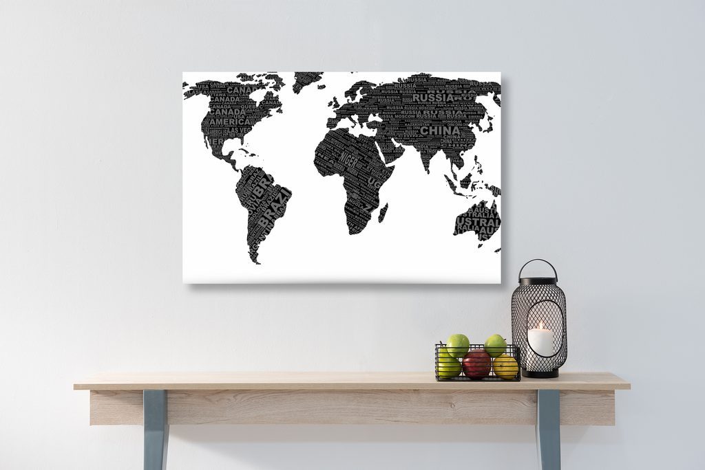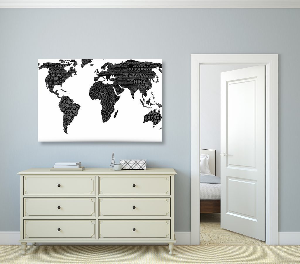 Obraz na korku nevšední mapa světa v černobílém provedení