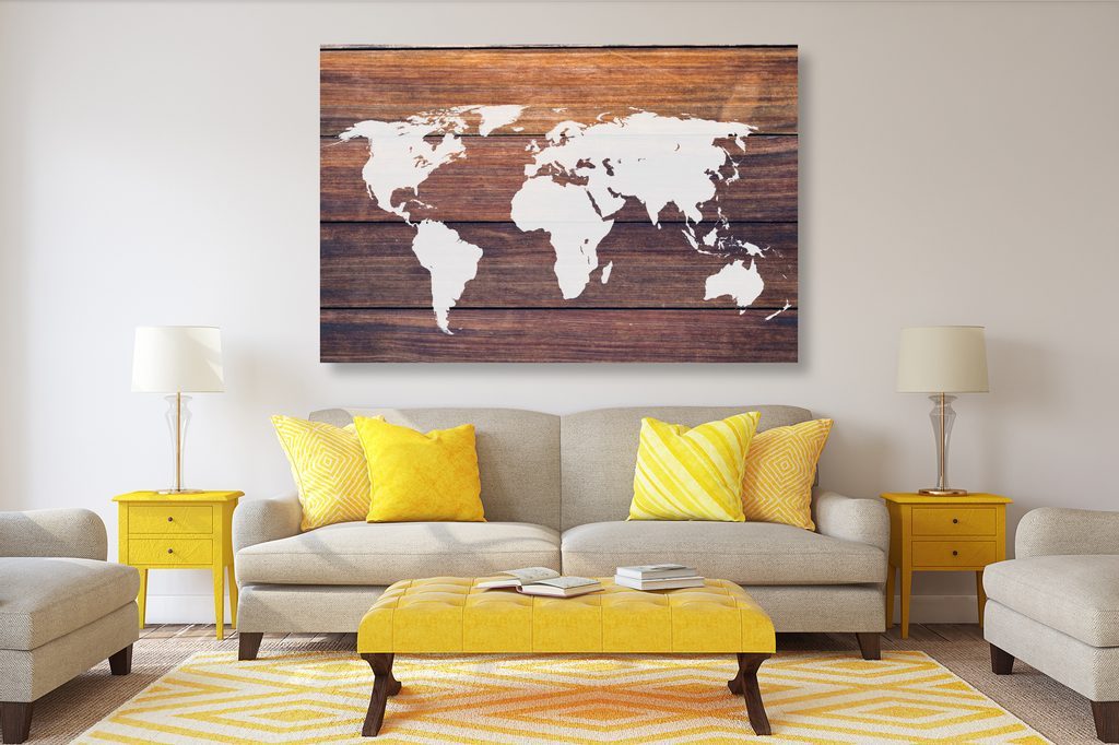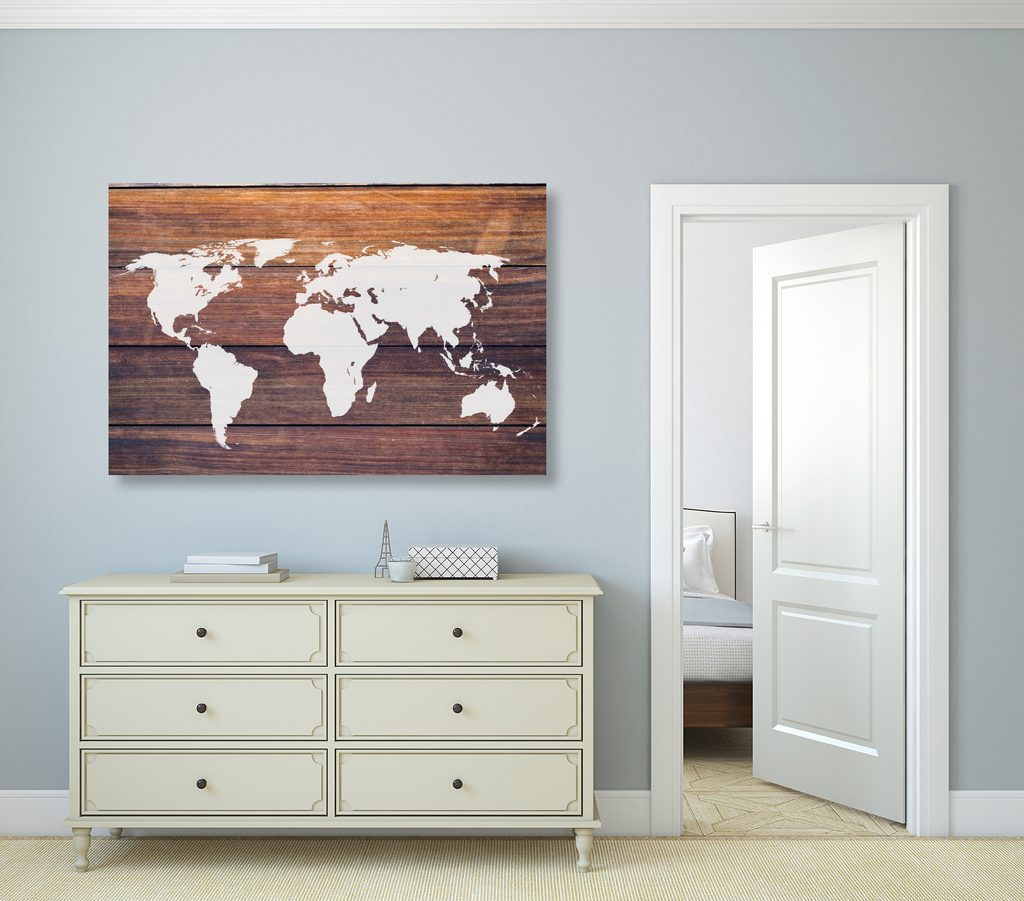 Obraz na korku moderní mapa světa na dřevěném podkladu