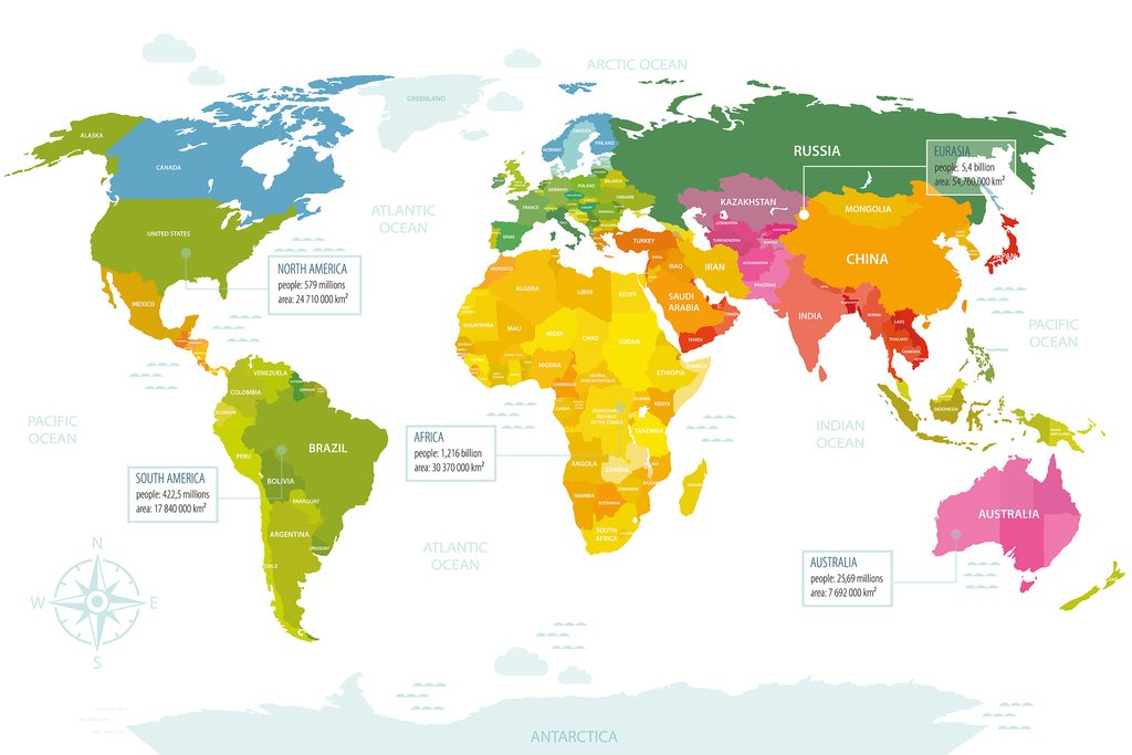 Obraz na korku poutavá mapa světa v okouzlujícím barveném provedení