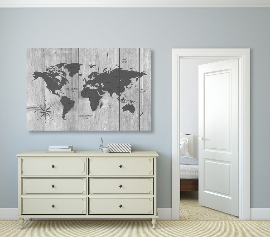 Obraz na korku šedá mapa na dřevěném podkladu