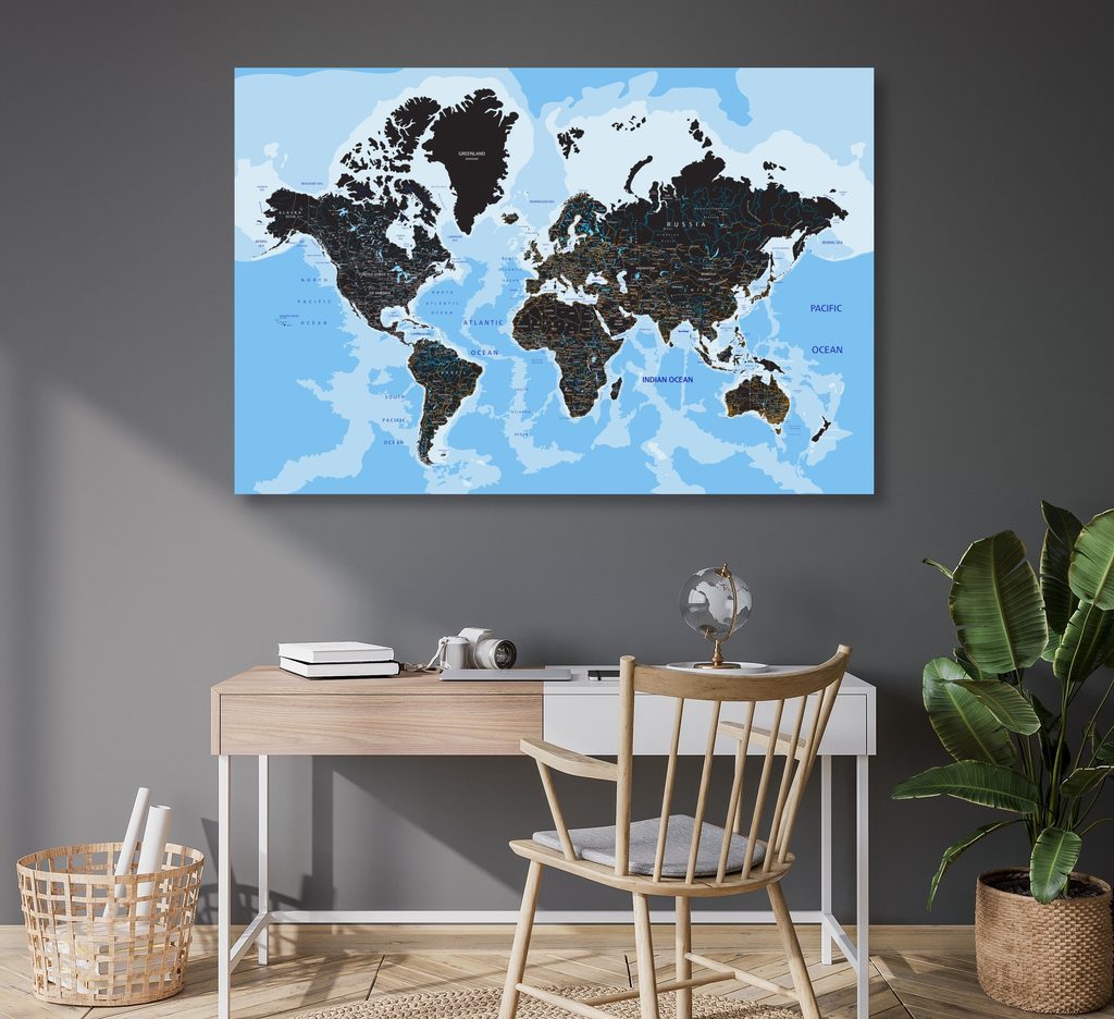 Obraz na korku poutavá mapa světa v okouzlujícím barveném provedení