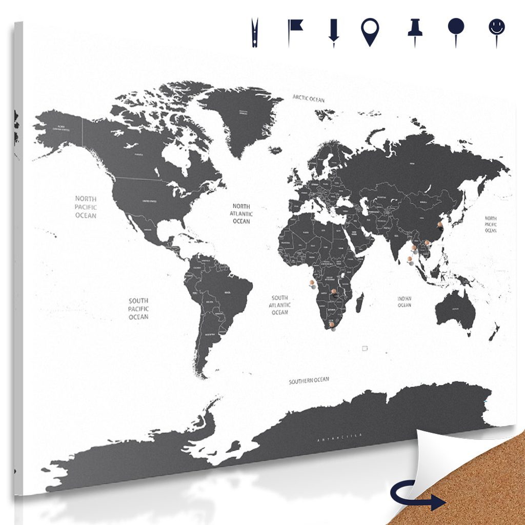 Výhody USP mapy na korku Snadná instalace, Korková deska tlustá až 3 mm, Rozmanité využití produktu - vhodné i jako dárek, Součástí obrazu je 10 ks připínáčků dle vlastního výběru