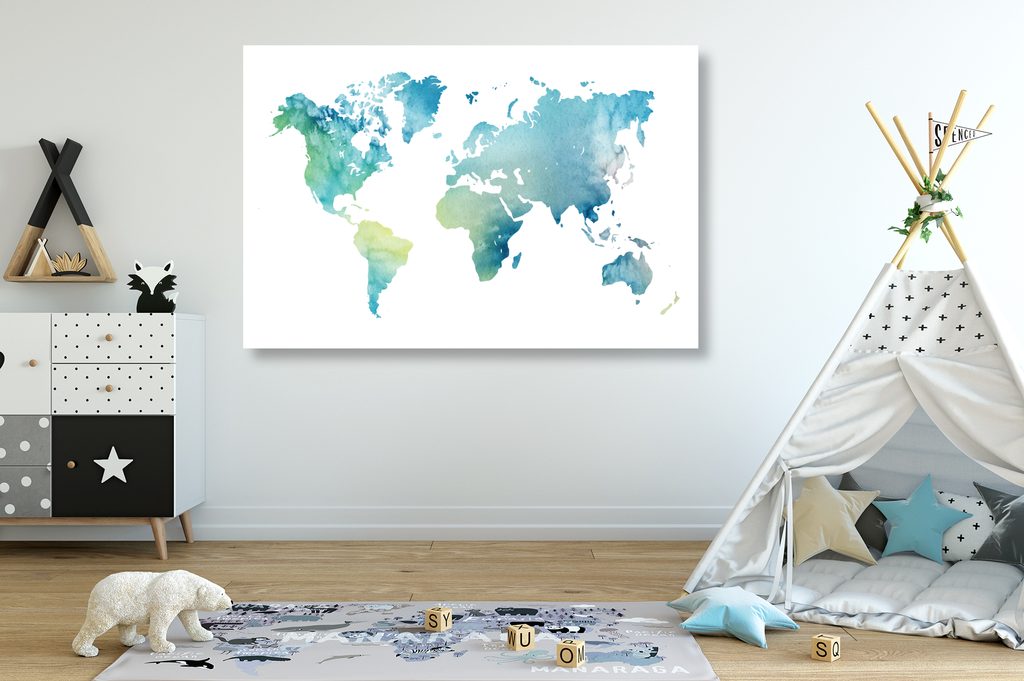 5-dílný obraz historická mapa světa na dřevěném pozadí