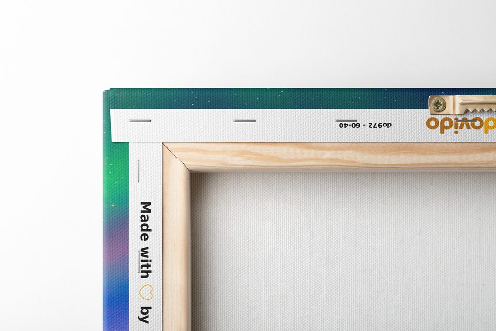 Jelikož chceme, aby obraz na vaší stěně vypadal dokonale, zaměřujeme se na detaily. Proto je plátno důkladně napnuto na rám, který je z kvalitního dřeva. Použitý rám je vyráběn z rámarských lišt, které jsou vhodné pro výrobu obrazů. Nesmíme zapomenout ani na to, že na zadní straně jsou nahustě umístěny spony. Spolu s obrazy obdržíte 1 až 2 ks závěsů, které jsou umístěny na zadní straně, podle toho, jaký rozměr obrazu zvolíte. Pro obrazy, jejichž šířka je nad 120 cm je pro zesílení rámu vsazena dřevěná příčka.
