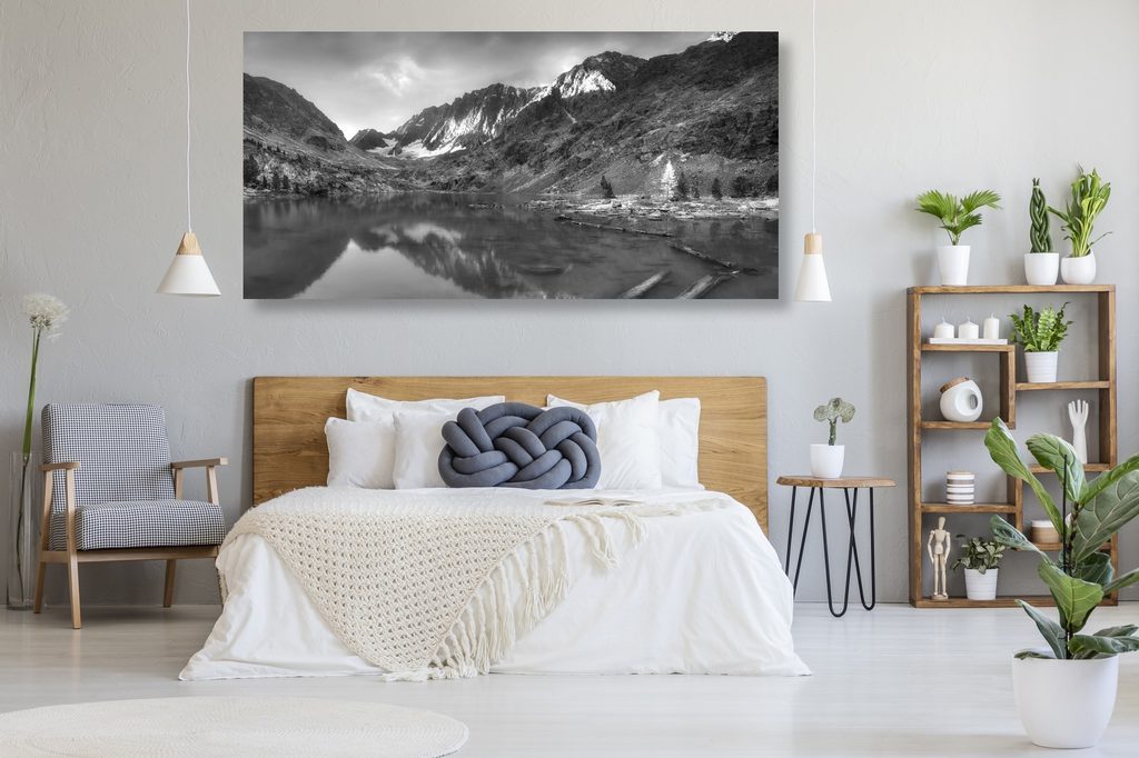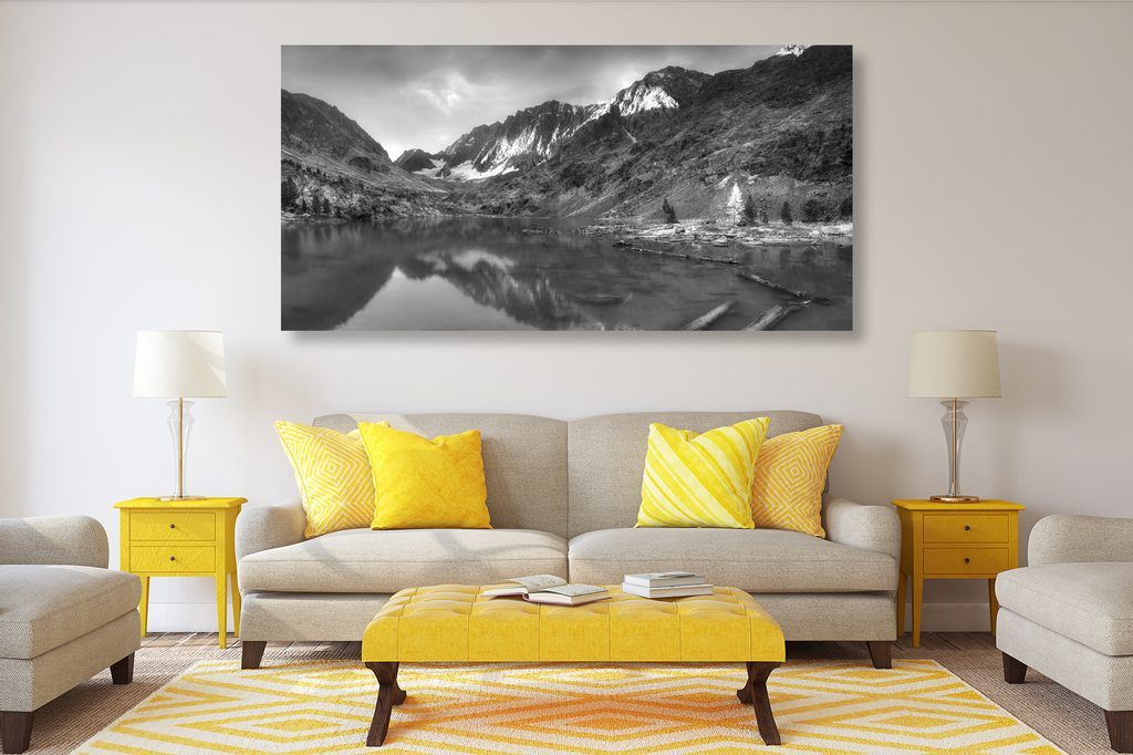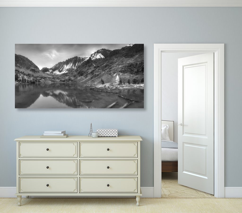 Obraz nedotčené vysohorské pleso v černobílém provedení