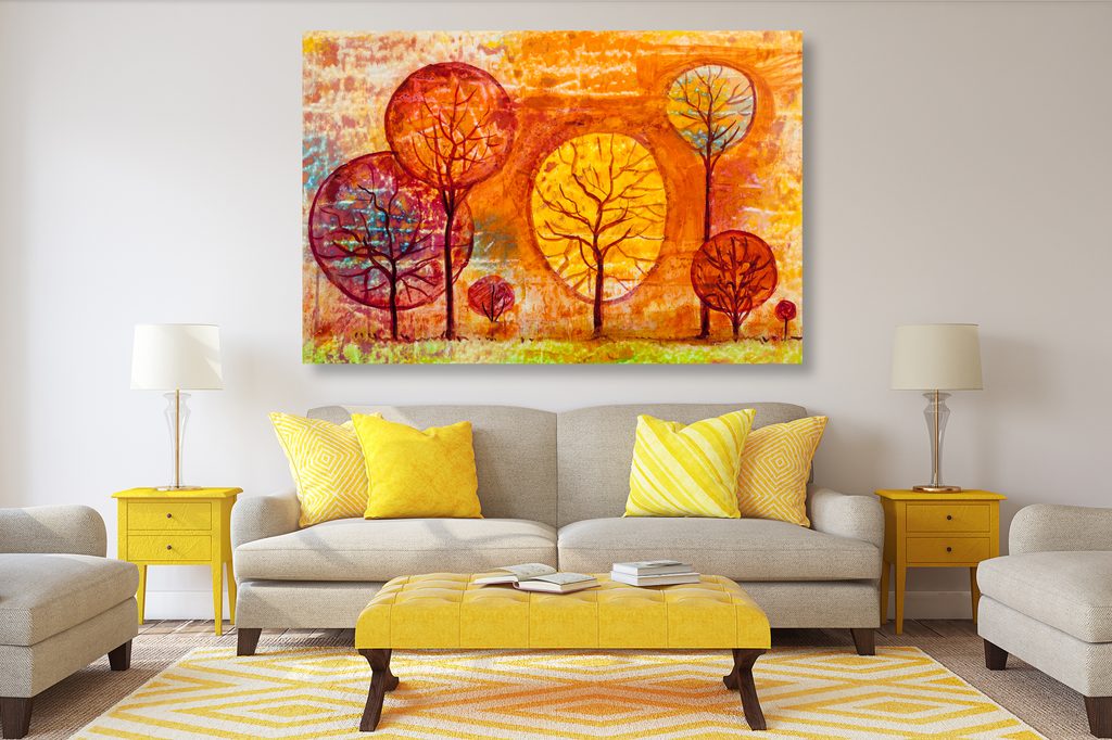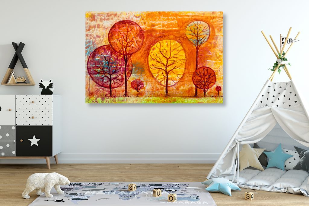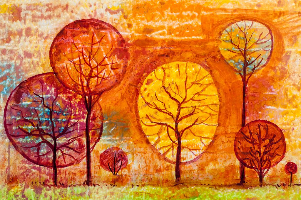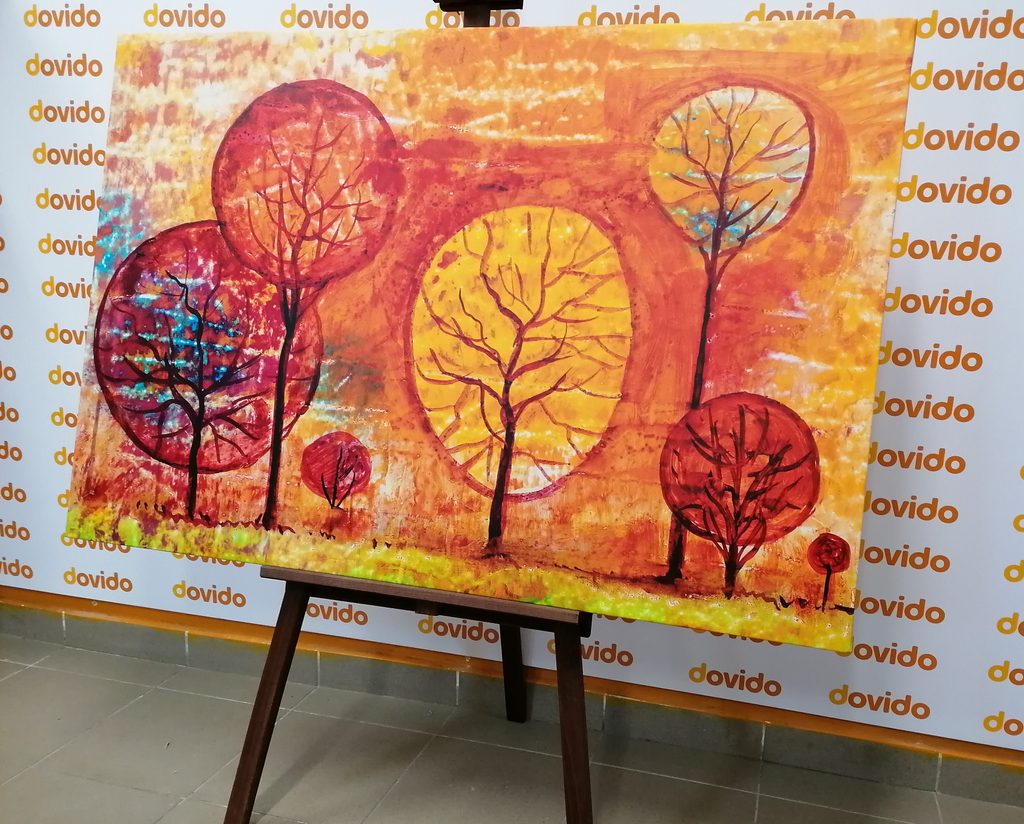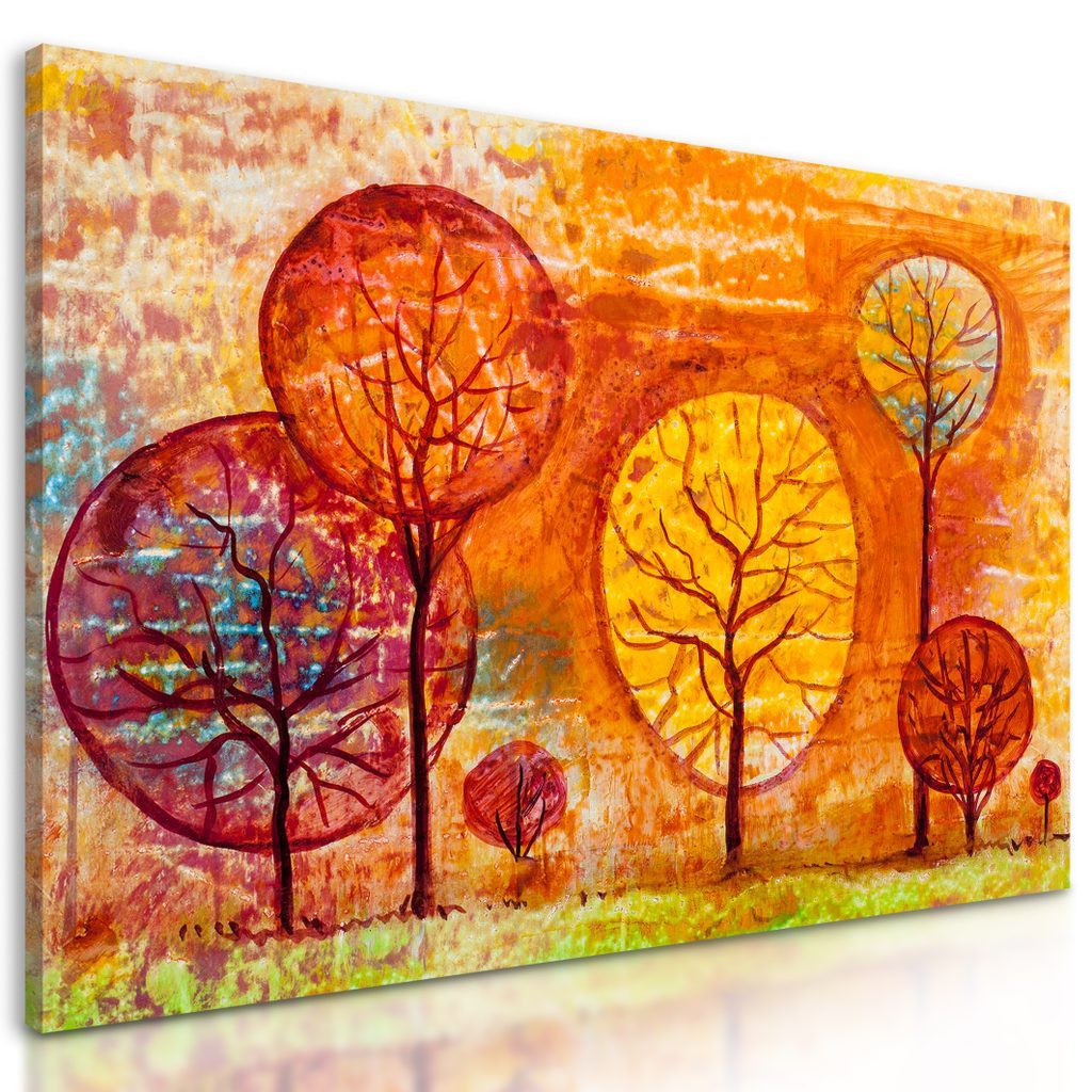 Obraz neobvyklé stromy v odstínech oranžové