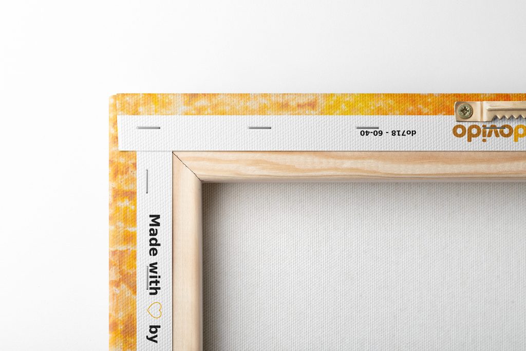 Jelikož chceme, aby obraz na vaší stěně vypadal dokonale, zaměřujeme se na detaily. Proto je plátno důkladně napnuto na rám, který je z kvalitního dřeva. Použitý rám je vyráběn z rámarských lišt, které jsou vhodné pro výrobu obrazů. Nesmíme zapomenout ani na to, že na zadní straně jsou nahustě umístěny spony. Spolu s obrazy obdržíte 1 až 2 ks závěsů, které jsou umístěny na zadní straně, podle toho, jaký rozměr obrazu zvolíte. Pro obrazy, jejichž šířka je nad 120 cm je pro zesílení rámu vsazena dřevěná příčka.