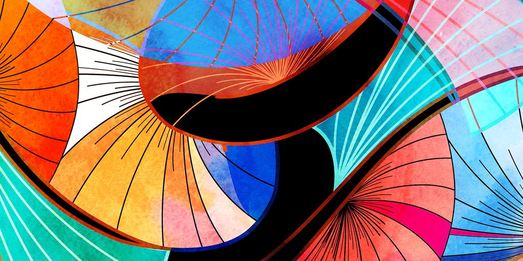 Obraz abstrakce tvarů v pestrobarevném provedení