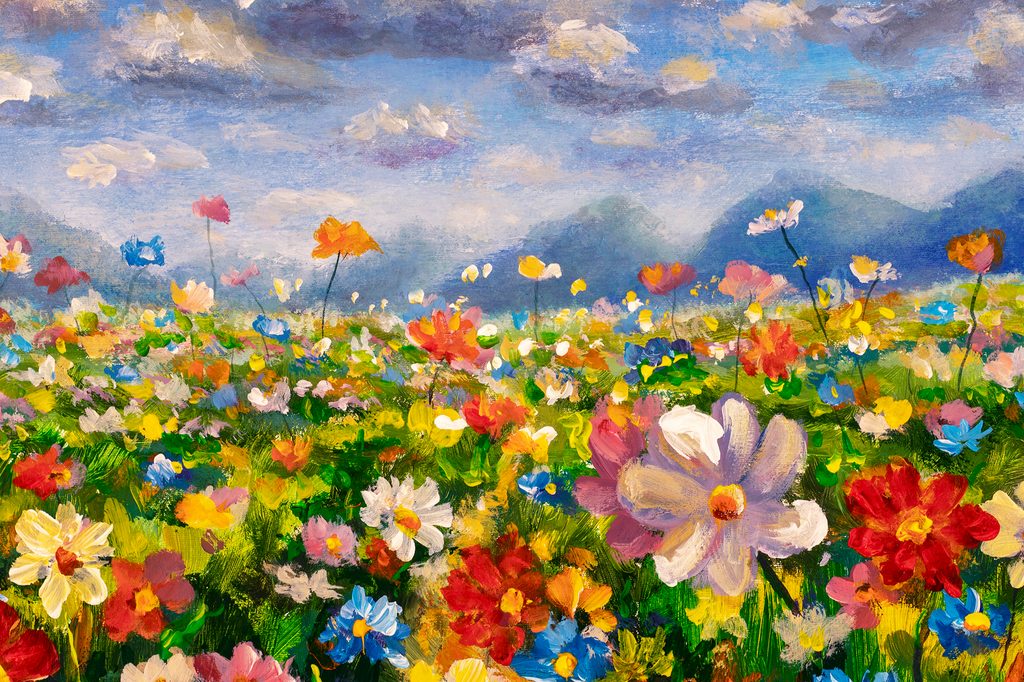 Obraz olejomalba louky plné květin