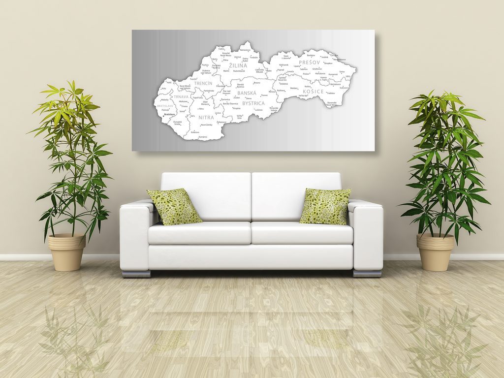 Obraz podrobná mapa Slovenské republiky v černobílém provedení