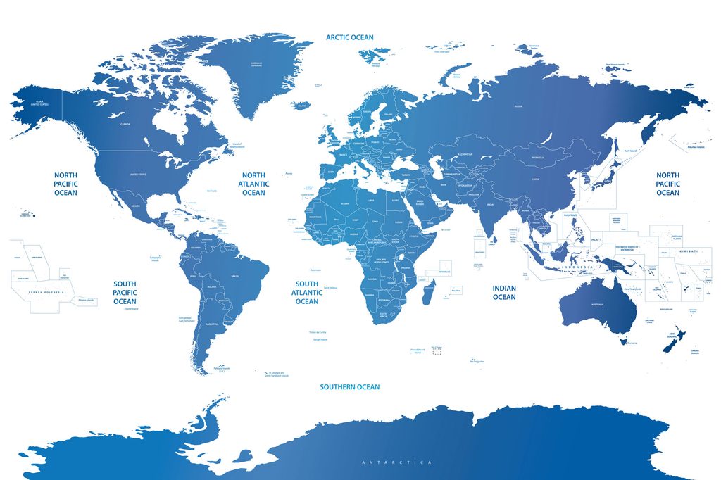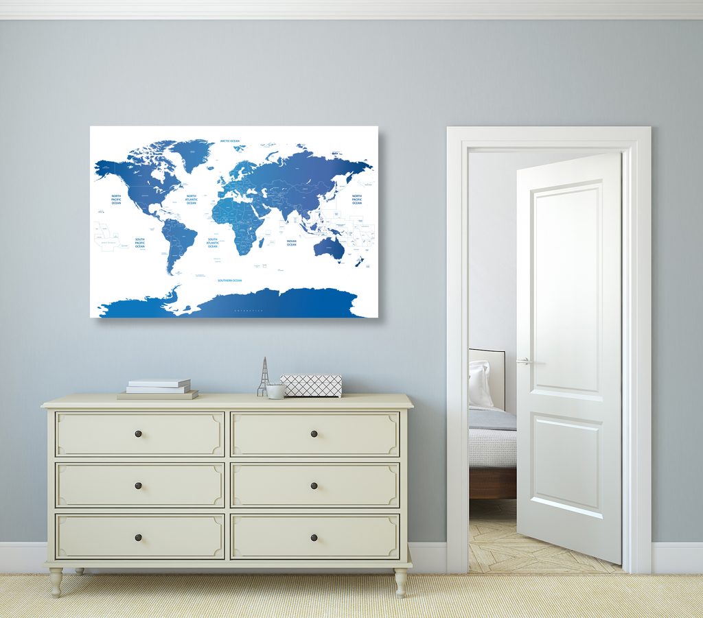 Obraz na korku moderní mapa světa na dřevěném podkladu