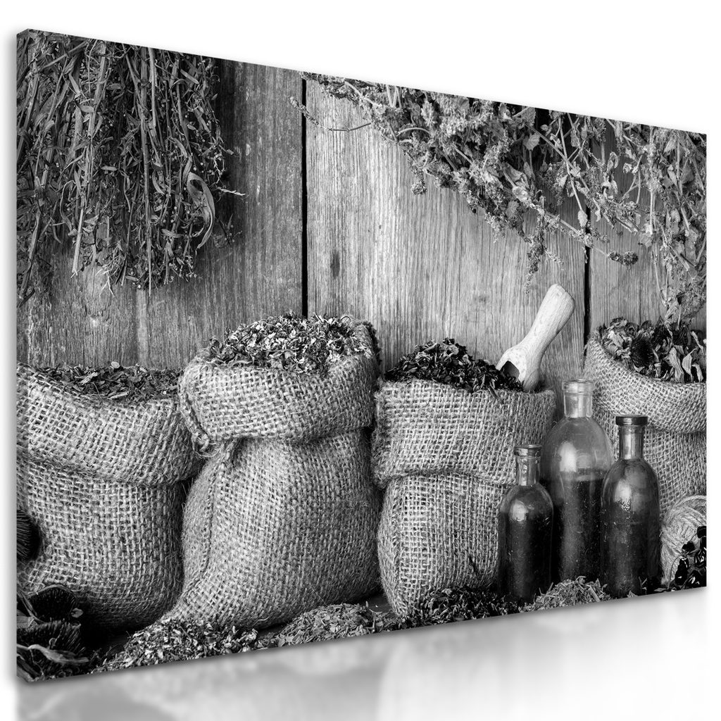 Obraz polní bylinky v černobílém provedení