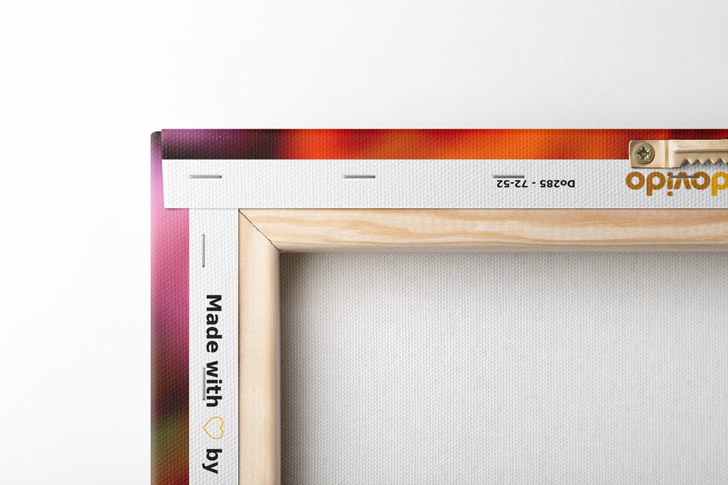 Jelikož chceme, aby obraz na vaší stěně vypadal dokonale, zaměřujeme se na detaily. Proto je plátno důkladně napnuto na rám, který je z kvalitního dřeva. Použitý rám je vyráběn z rámarských lišt, které jsou vhodné pro výrobu obrazů. Nesmíme zapomenout ani na to, že na zadní straně jsou nahustě umístěny spony. Spolu s obrazy obdržíte 1 až 2 ks závěsů, které jsou umístěny na zadní straně, podle toho, jaký rozměr obrazu zvolíte. Pro obrazy, jejichž šířka je nad 120 cm je pro zesílení rámu vsazena dřevěná příčka.