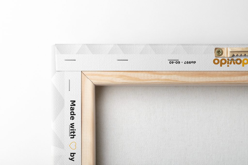 Jelikož chceme, aby obraz na vaší stěně vypadal dokonale, zaměřujeme se na detaily. Proto je plátno důkladně napnuto na rám, který je z kvalitního dřeva. Použitý rám je vyráběn z rámarských lišt, které jsou vhodné pro výrobu obrazů. Nesmíme zapomenout ani na to, že na zadní straně jsou nahustě umístěny spony. Spolu s obrazy obdržíte 1 až 2 ks závěsů, které jsou umístěny na zadní straně, podle toho, jaký rozměr obrazu zvolíte. Pro obrazy, jejichž šířka je nad 120 cm je pro zesílení rámu vsazena dřevěná příčka.