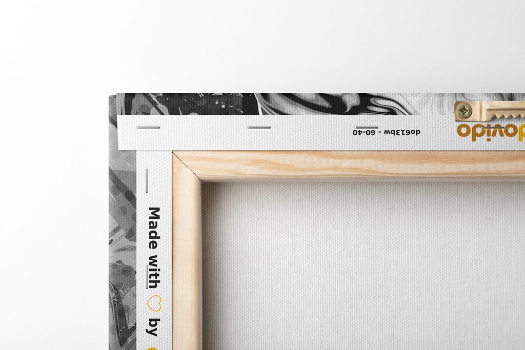 Jelikož chceme, aby obraz na vaší stěně vypadal dokonale, zaměřujeme se na detaily. Proto je plátno důkladně napnuto na rám, který je z kvalitního dřeva. Použitý rám je vyráběn z rámarských lišt, které jsou vhodné pro výrobu obrazů. Nesmíme zapomenout ani na to, že na zadní straně jsou nahustě umístěny spony. Spolu s obrazy obdržíte 1 až 2 ks závěsů, které jsou umístěny na zadní straně, podle toho, jaký rozměr obrazu zvolíte. Pro obrazy, jejichž šířka je nad 120 cm je pro zesílení rámu vsazena dřevěná příčka.