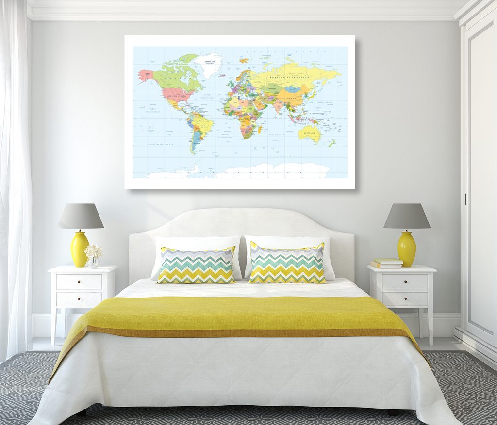 Obraz na korku mapa s vlajkami jednotlivých zemí