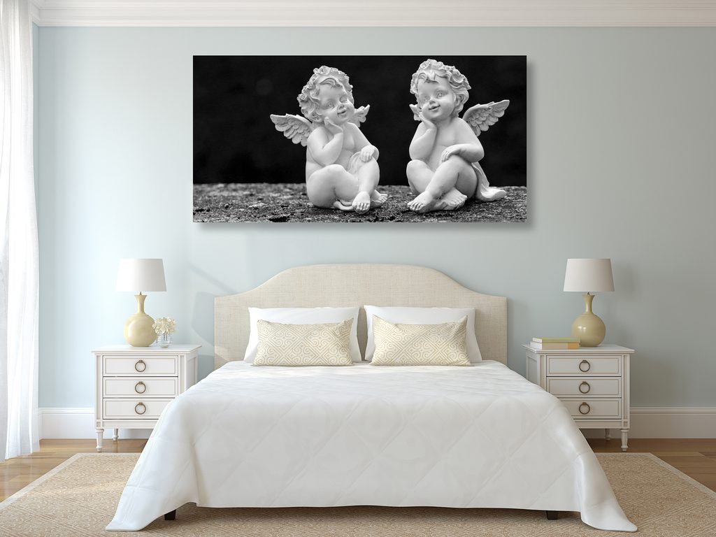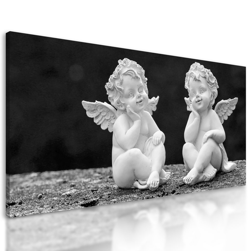 Obraz sošky andílků v černobílém provedení