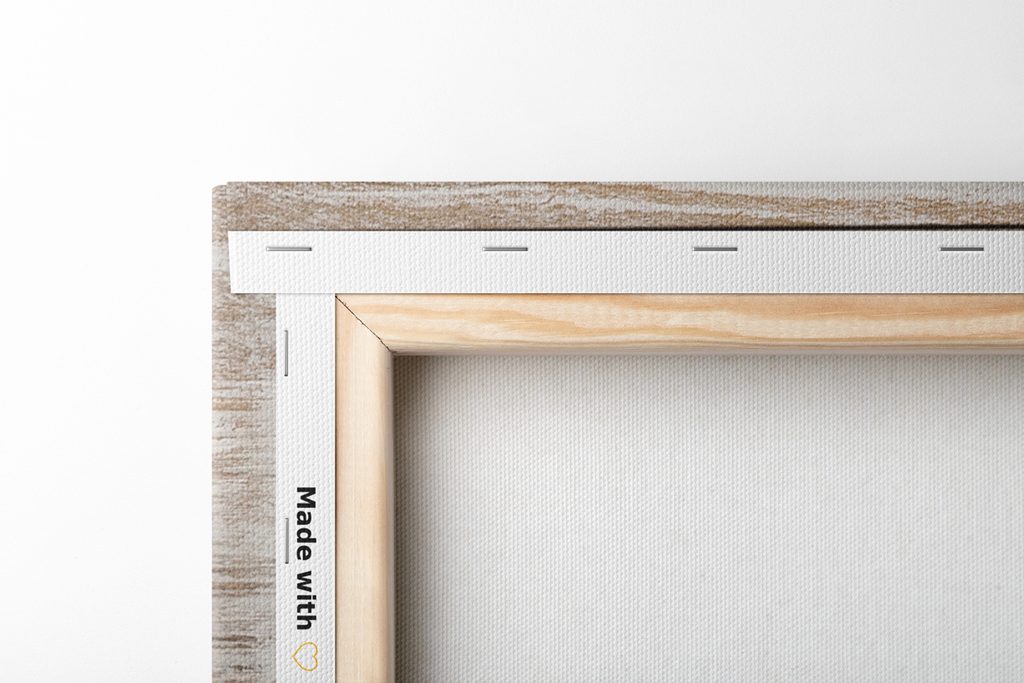 Jelikož chceme, aby obraz na vaší stěně vypadal dokonale, zaměřujeme se na detaily. Proto je plátno důkladně napnuto na rám, který je z kvalitního dřeva. Použitý rám je vyráběn z rámarských lišt, které jsou vhodné pro výrobu obrazů. Nesmíme zapomenout ani na to, že na zadní straně jsou nahustě umístěny spony. Spolu s obrazy obdržíte 1 až 2 ks závěsů, které jsou umístěny na zadní straně, podle toho, jaký rozměr obrazu zvolíte. Pro obrazy, jejichž šířka je nad 120 cm je pro zesílení rámu vsazena dřevěná příčka.