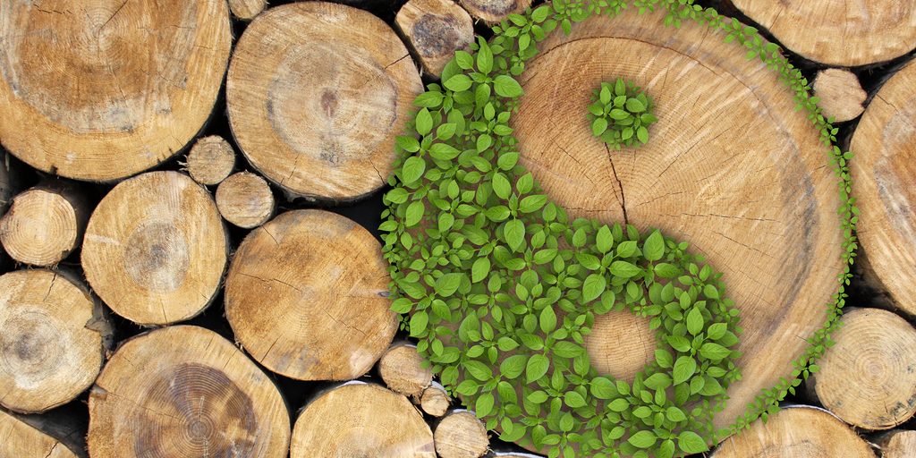 Obraz symbol Jin a Jang ukrytý ve pařezech