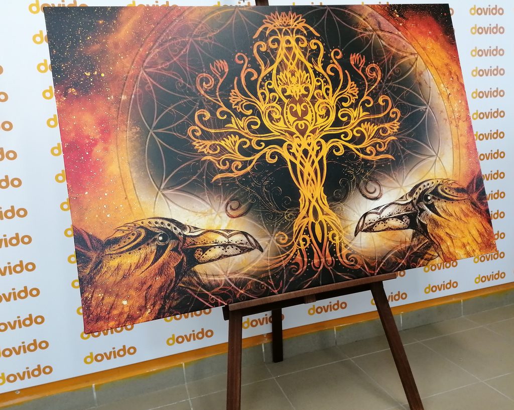 Obraz tajemný strom života s havrany