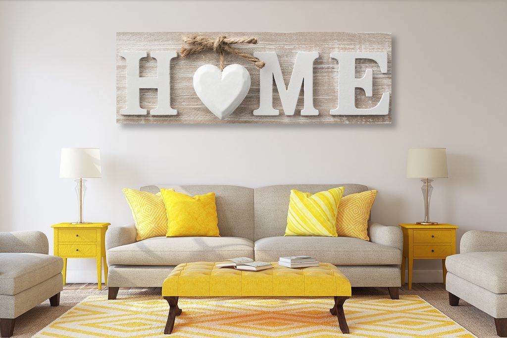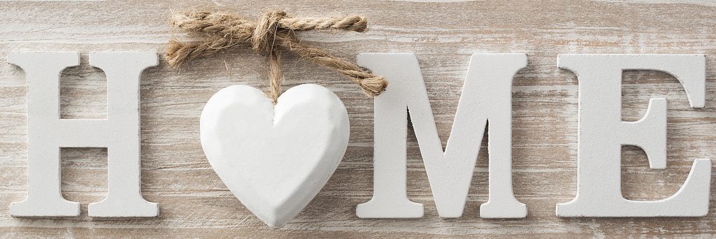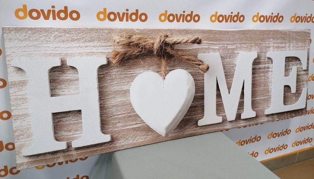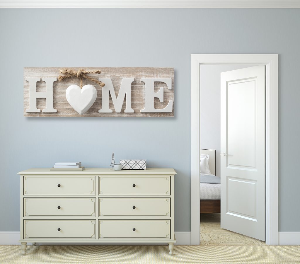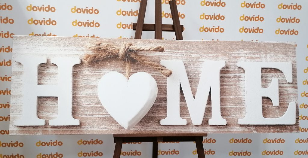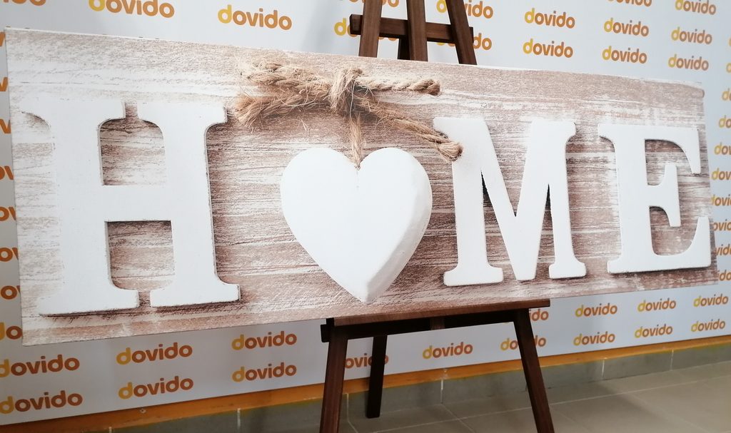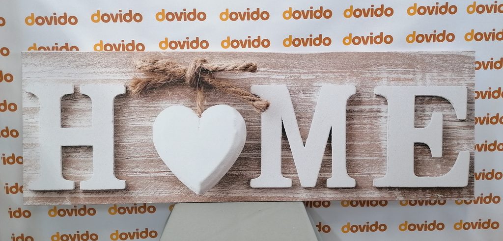 Obraz romantické zátiší s nápisem Home v černobílém provedení