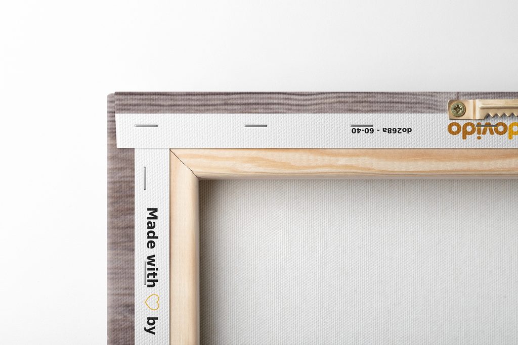 Jelikož chceme, aby obraz na vaší stěně vypadal dokonale, zaměřujeme se na detaily. Proto je plátno důkladně napnuto na rám, který je z kvalitního dřeva. Použitý rám je vyráběn z rámarských lišt, které jsou vhodné pro výrobu obrazů. Nesmíme zapomenout ani na to, že na zadní straně jsou nahustě umístěny spony. Spolu s obrazy obdržíte 1 až 2 ks závěsů, které jsou umístěny na zadní straně, podle toho, jaký rozměr obrazu zvolíte. Pro obrazy, jejichž šířka je nad 120 cm je pro zesílení rámu vsazena dřevěná příčka.