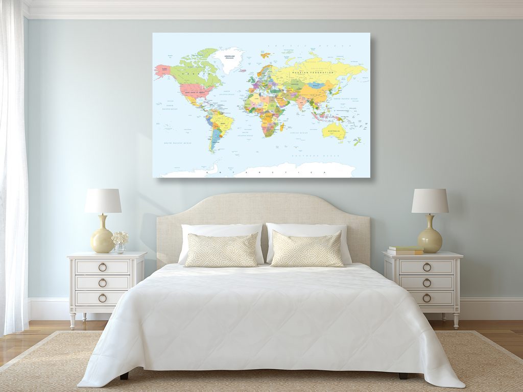 Obraz mapa světa s hudebním motivem v černobílém provedení