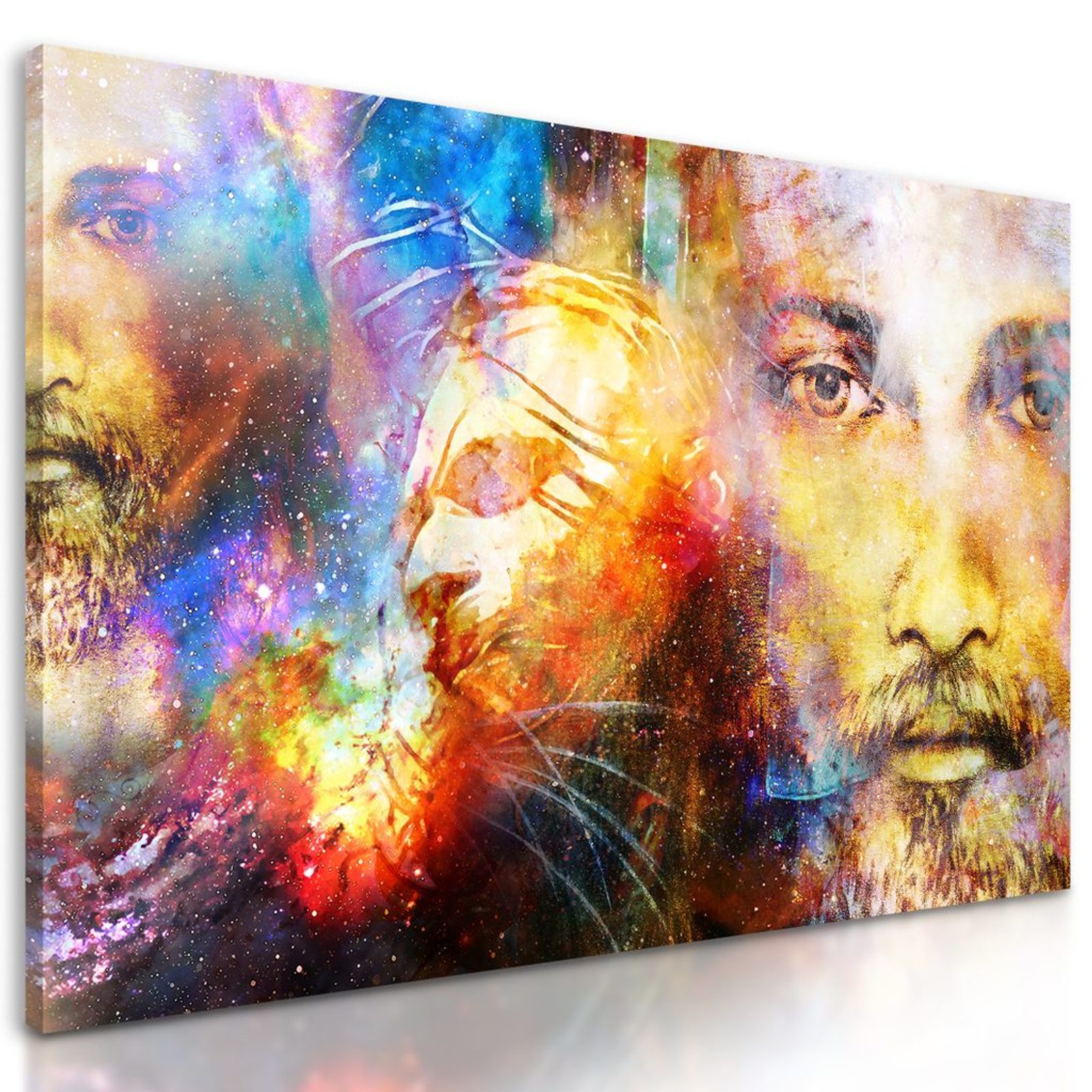 Obraz Ježíš s králem zvířat v černobílém provedení