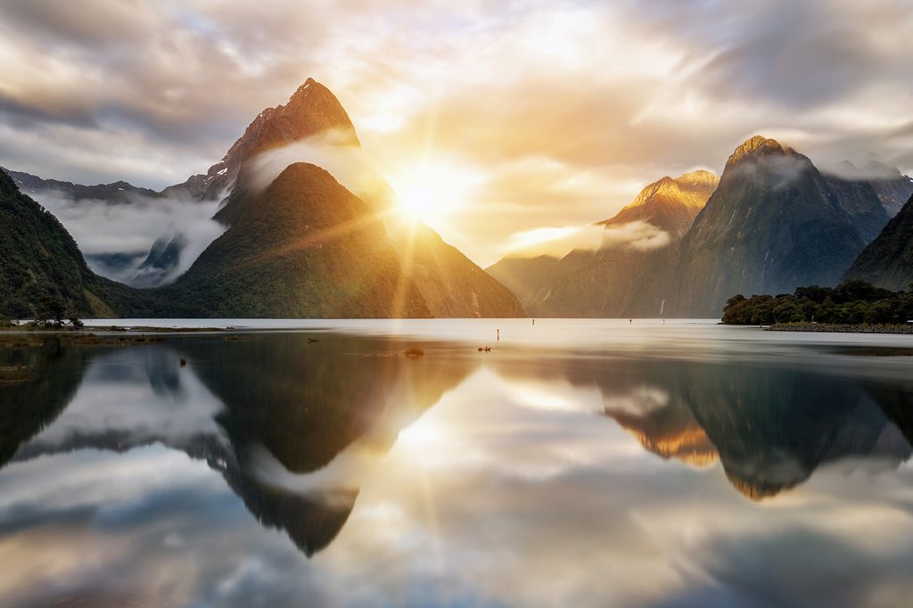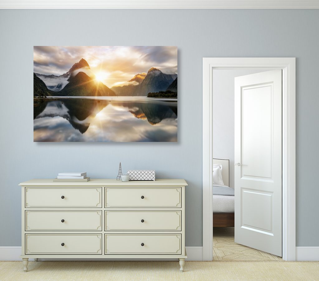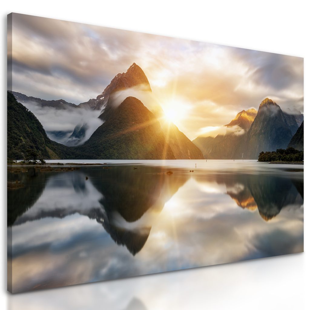 Obraz východ slunce nad jezerem na Novém Zélandu
