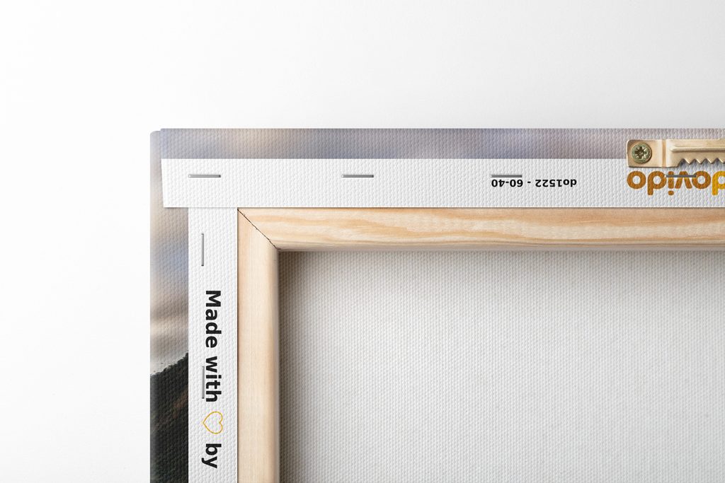 Jelikož chceme, aby obraz na vaší stěně vypadal dokonale, zaměřujeme se na detaily. Proto je plátno důkladně napnuto na rám, který je z kvalitního dřeva. Použitý rám je vyráběn z rámarských lišt, které jsou vhodné pro výrobu obrazů. Nesmíme zapomenout ani na to, že na zadní straně jsou nahustě umístěny spony. Spolu s obrazy obdržíte 1 až 2 ks závěsů, které jsou umístěny na zadní straně, podle toho, jaký rozměr obrazu zvolíte. Pro obrazy, jejichž šířka je nad 120 cm je pro zesílení rámu vsazena dřevěná příčka.