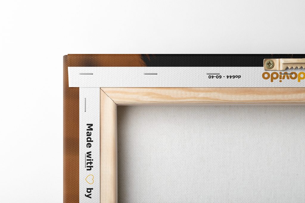 Jelikož chceme, aby obraz na vaší stěně vypadal dokonale, zaměřujeme se na detaily. Proto je plátno důkladně napnuto na rám, který je z kvalitního dřeva. Použitý rám je vyráběn z rámarských lišt, které jsou vhodné pro výrobu obrazů. Nesmíme zapomenout ani na to, že na zadní straně jsou nahustě umístěny spony. Spolu s obrazy obdržíte 1 až 2 ks závěsů, které jsou umístěny na zadní straně, podle toho, jaký rozměr obrazu zvolíte. Pro obrazy, jejichž šířka je nad 120 cm je pro zesílení rámu vsazena dřevěná příčka.