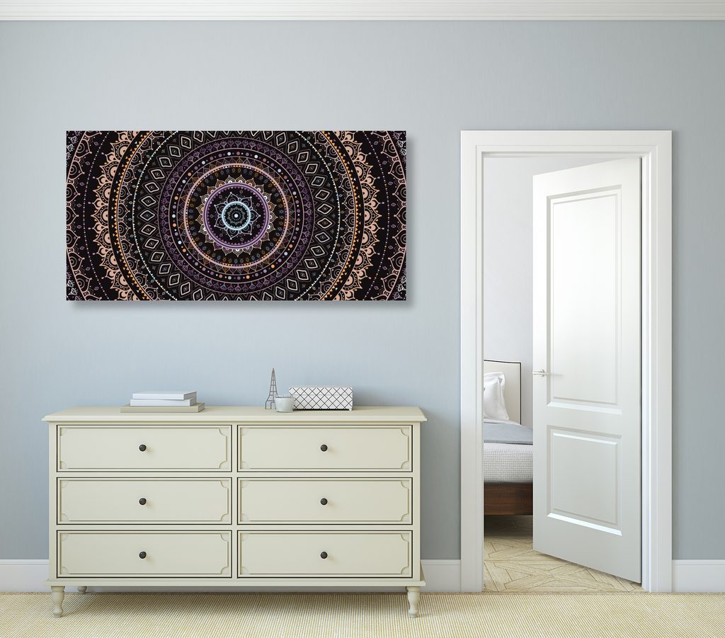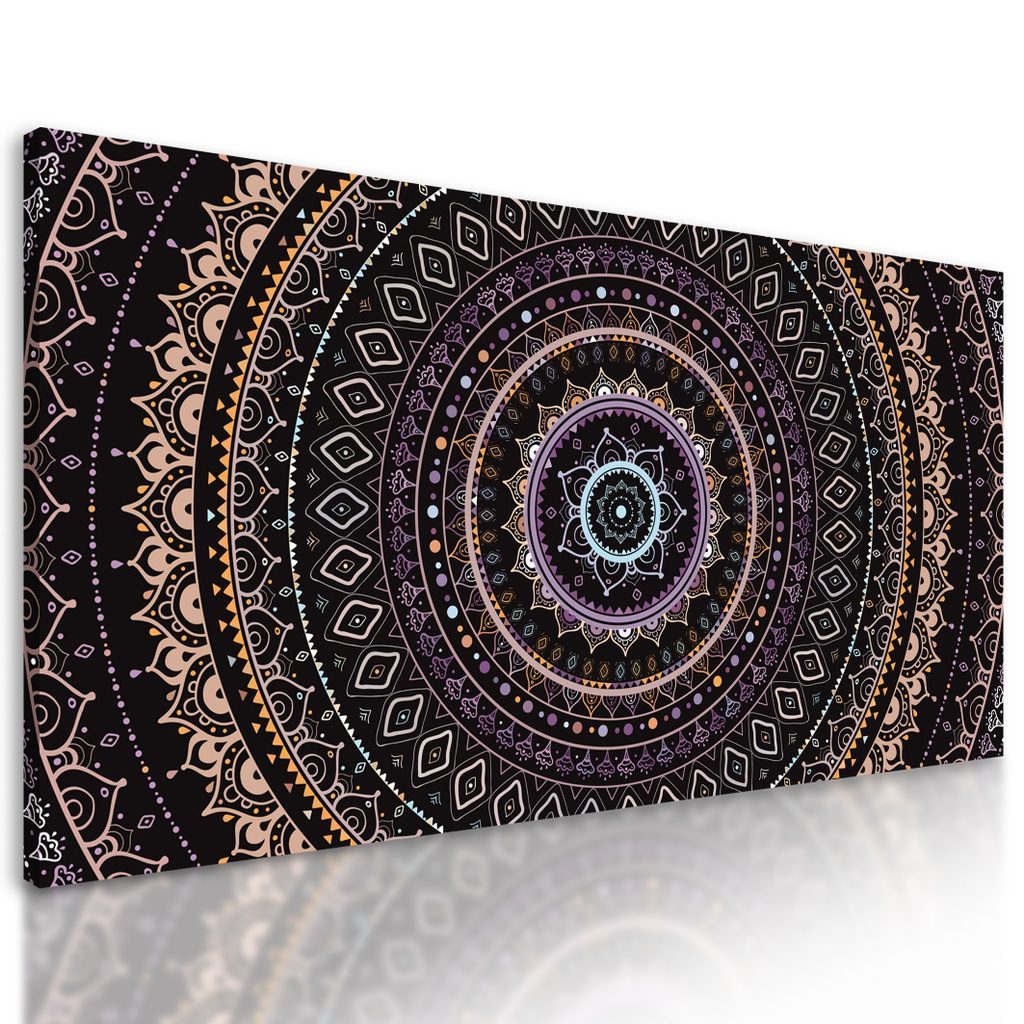 5-dílný obraz moderní Mandala v černo-růžovém provedení