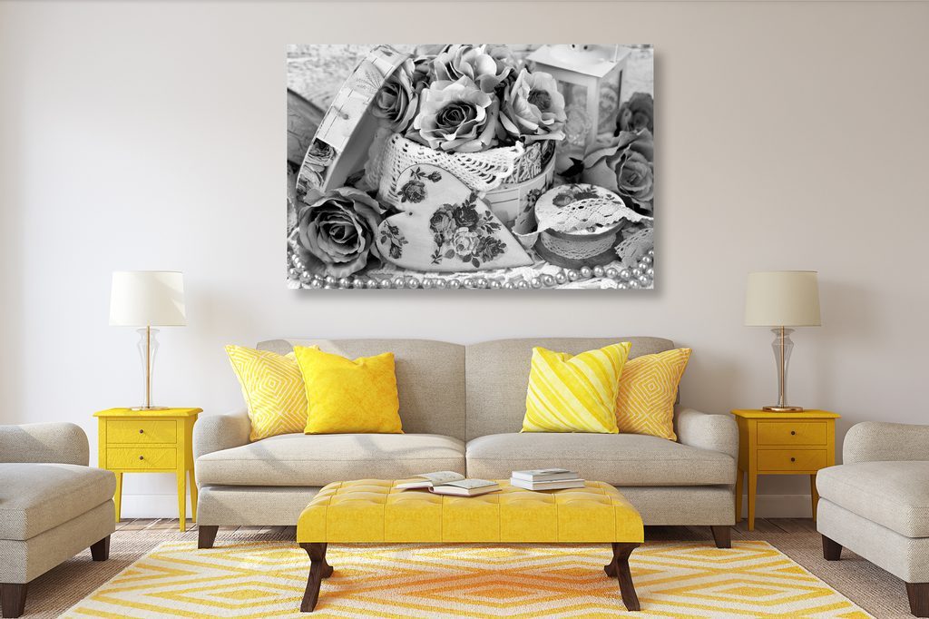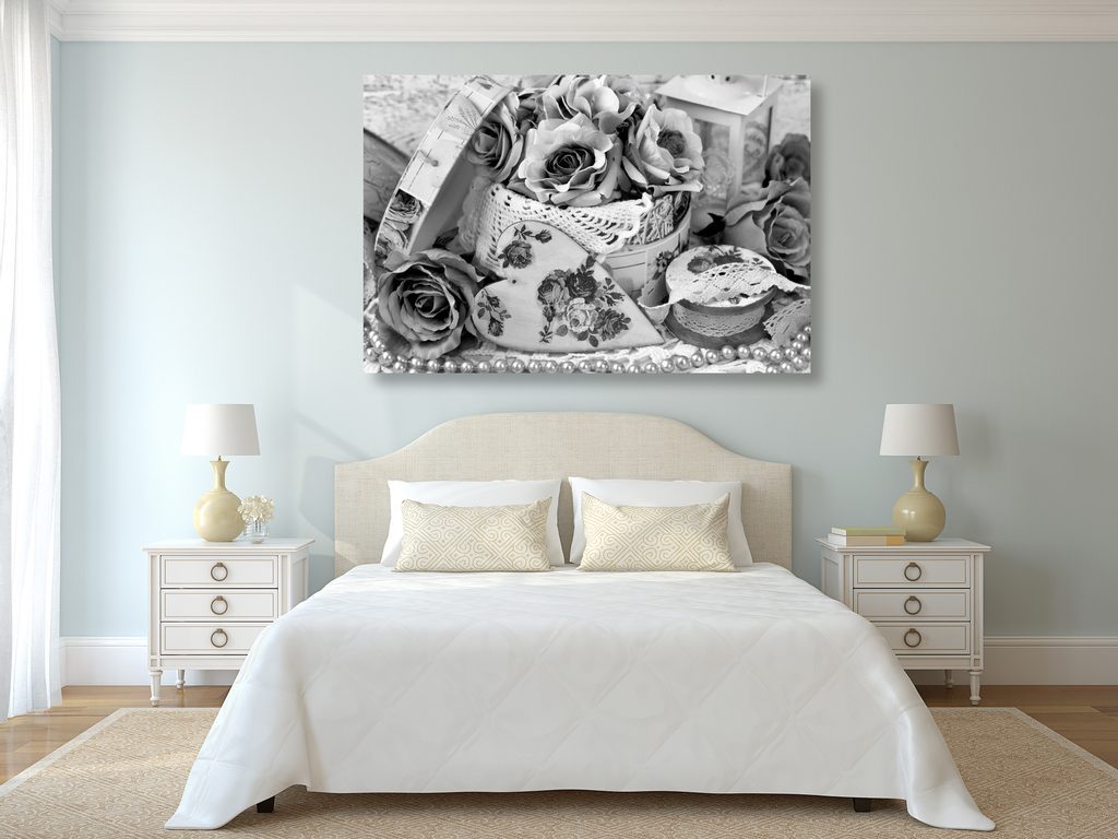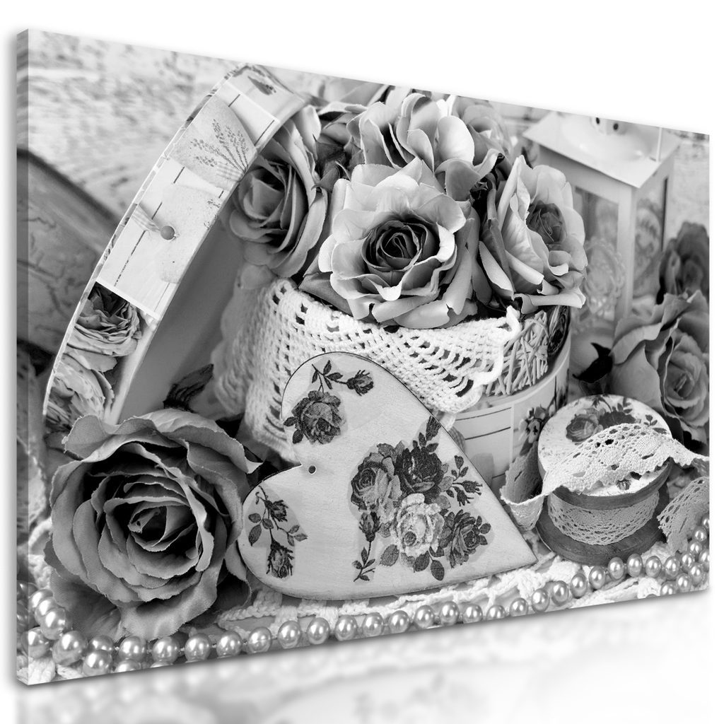 Obraz zátiší plné růží v černobílém provedení