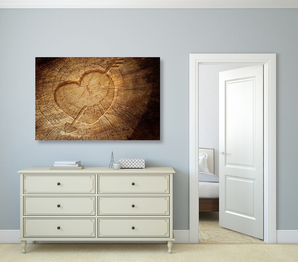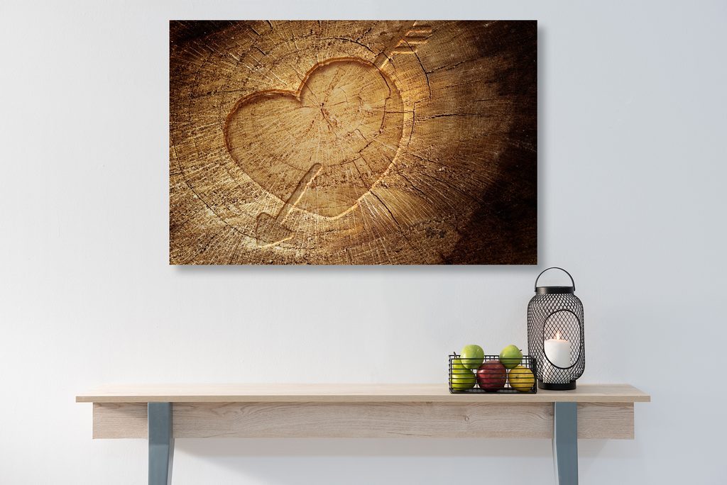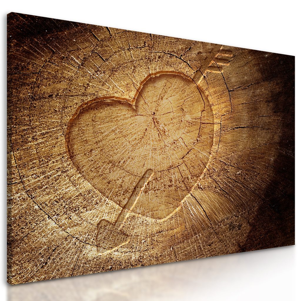 Obraz znak lásky vyřezaný na pařezu