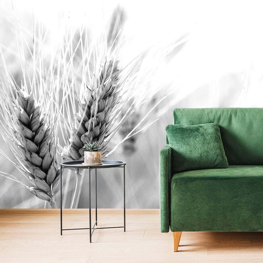 Okouzlující samolepící fototapeta detail pšenice v černobílém provedení