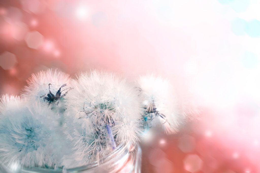 Okouzlující samolepící tapeta sklenici s pampeliškami