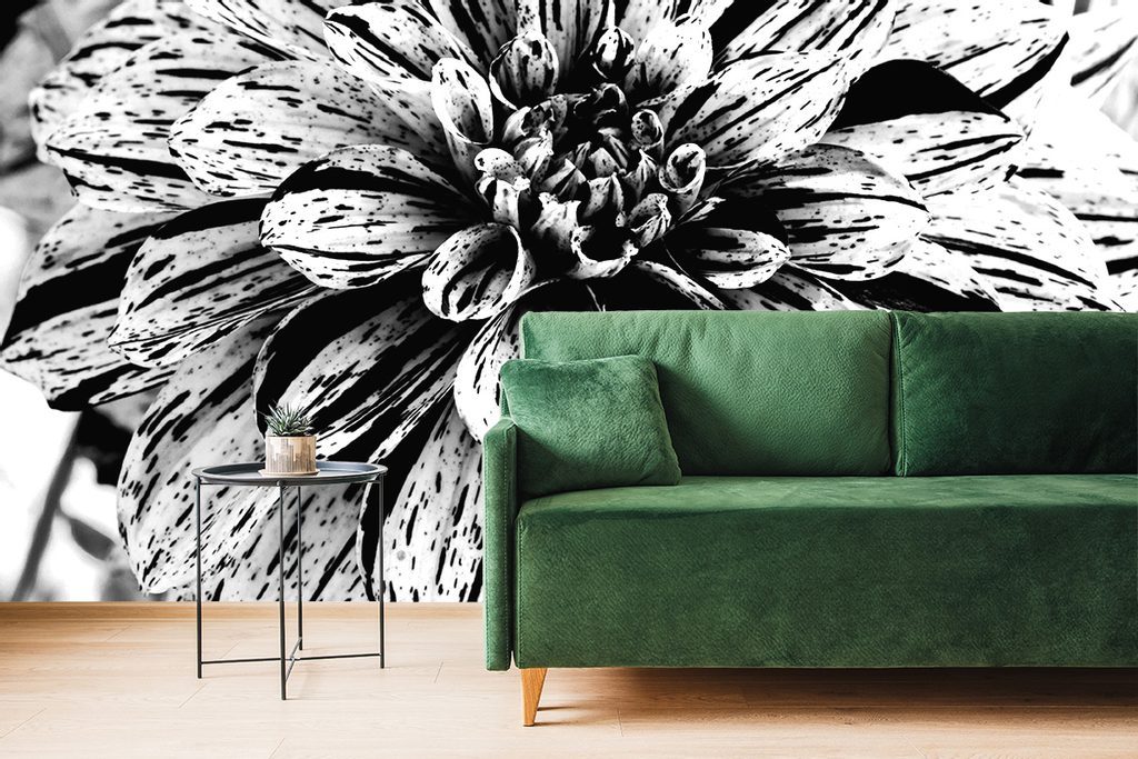 Tapeta zajímavé abstraktní květiny v černobílém provedení