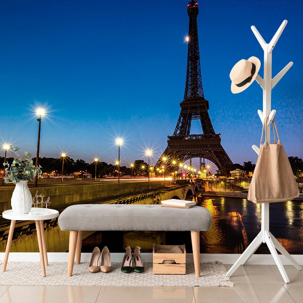 Originální samolepící fototapeta večerní Eiffelova věž