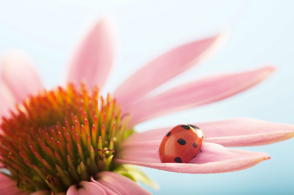 Originální samolepící fototapeta beruška na lupení echinacei