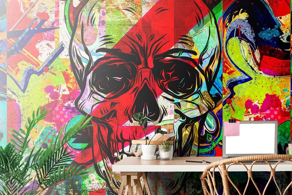 Originální samolepící tapeta lebka v graffiti stylu