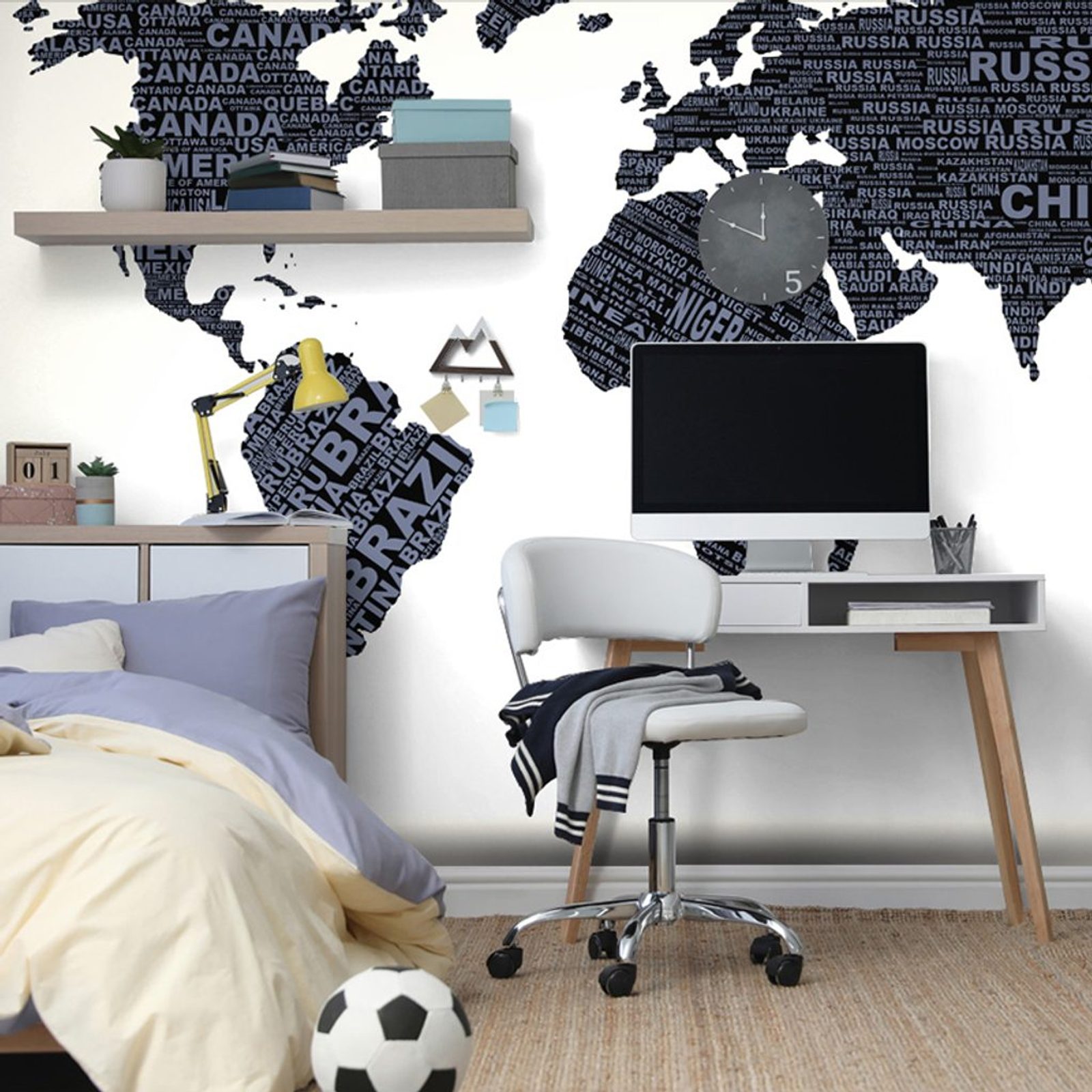Tapeta abstraktní mapa celého světa v černobílém provedení
