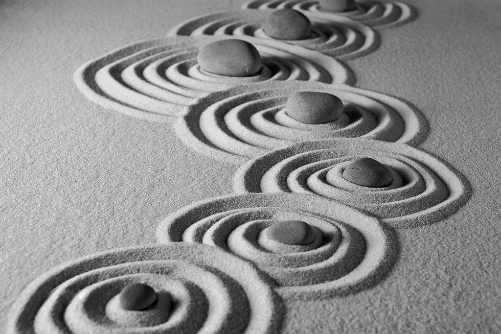 Samolepící fototapeta černobílé písečné kruhy se zen kameny